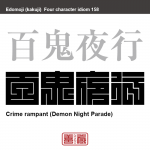 2020年8月5日 / 最終更新日時 : 2020年8月5日 zenzoadmin 角字で四字熟語 百鬼夜行 ひゃっき-やこう 角字でことわざ、四字熟語 百鬼夜行 ひゃっき-やこう 妖怪や怪物が夜な夜な連なって歩き回ること。転じて、悪人たちが好き勝手に悪事を働くこと 有名なことわざや四字熟語の漢字を角字で表現してみました。熟語の意味も簡単に解説しています。