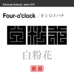 2020年8月27日 / 最終更新日時 : 2020年8月27日 zenzoadmin 角字で花と植物の名前 白粉花 オシロイバナ 角字で花と植物の名前、漢字表記 白粉花 オシロイバナ 花や植物の名前(漢字表記)を角字で表現してみました。該当する植物についても簡単に解説しています。