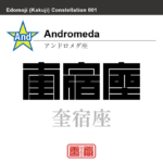 2023年7月10日 / 最終更新日時 : 2024年1月26日 zenzoadmin 角字で星座 奎宿座 アンドロメダ座 角字で星座の名前、漢字表記 奎宿座 アンドロメダ座 角字で星座の名前、漢字表記 星座の名前(漢字表記)を角字で表現してみました。該当する星座についても簡単に解説しています。